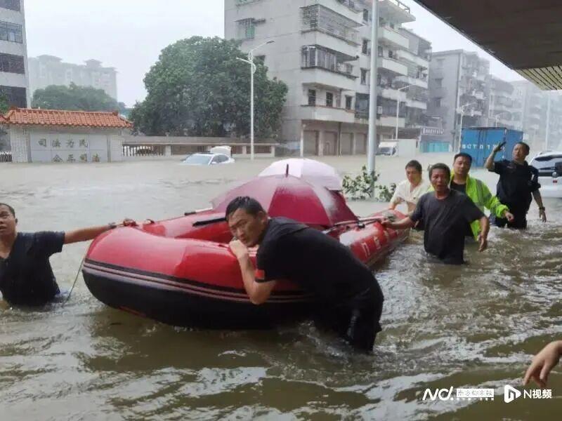 △9月24日下昼,在台风“桦加沙”影响下,珠海逆风暴增水,黄杨河水位热潮,激发海水倒灌,援手东说念主员哄骗皮划艇滚动受困寰球。